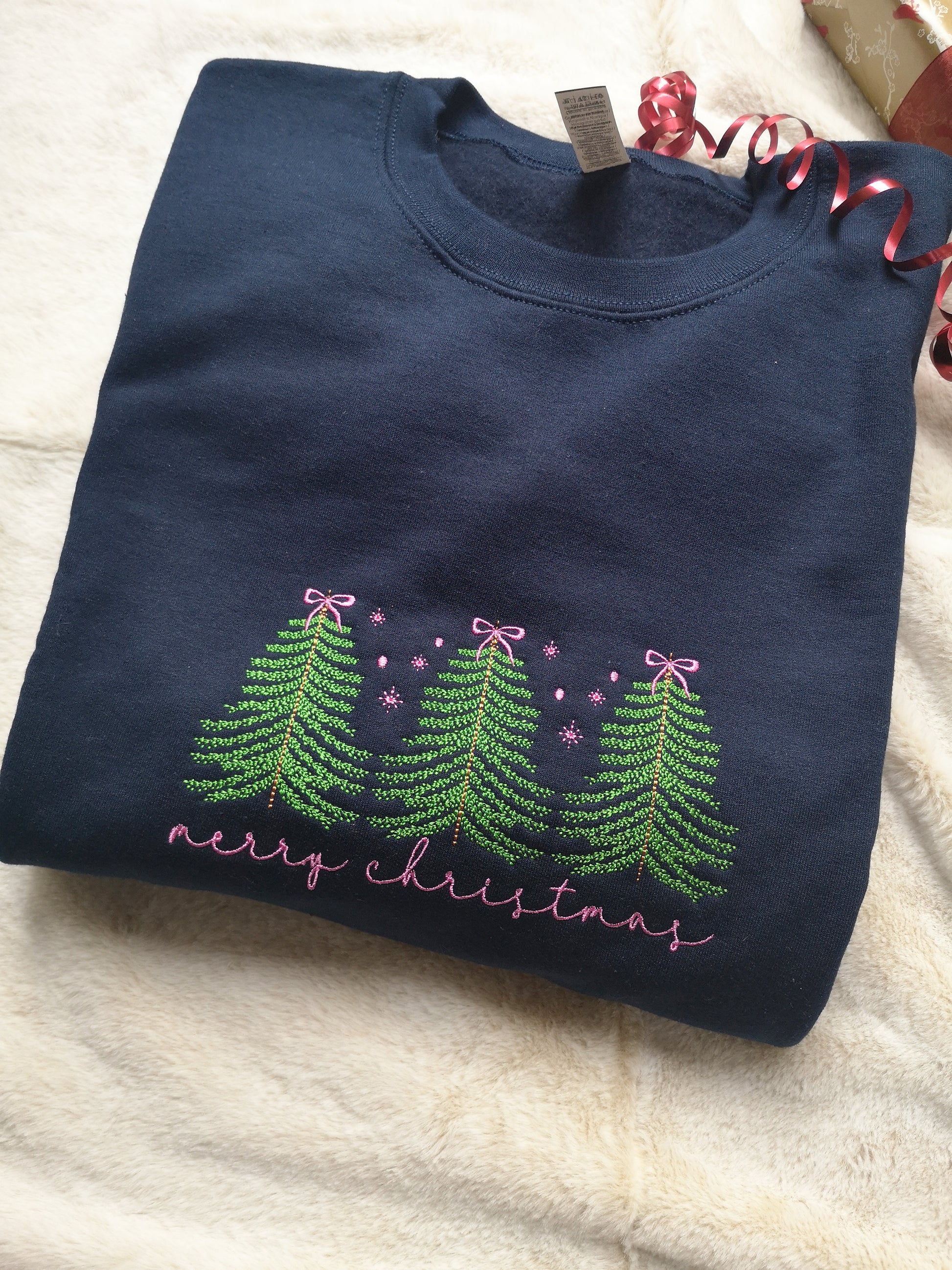 This crewneck features Trees And Bows Embroidery design on the front. This Sweatshirt is a great addition to your wardrobe. Our crewnecks are crafted from the highest -quality fabric for an incredibly soft and comfortable fit!
