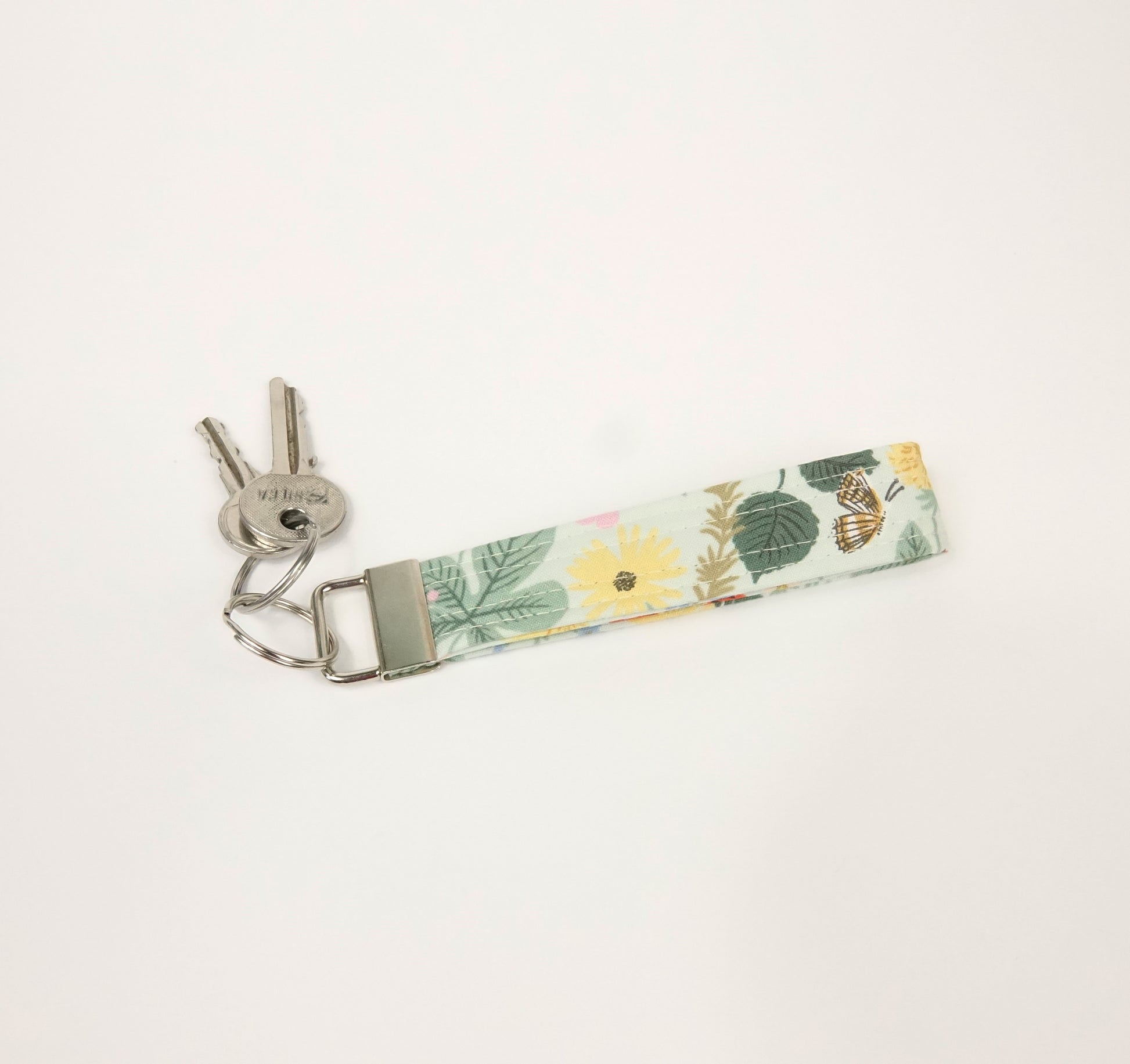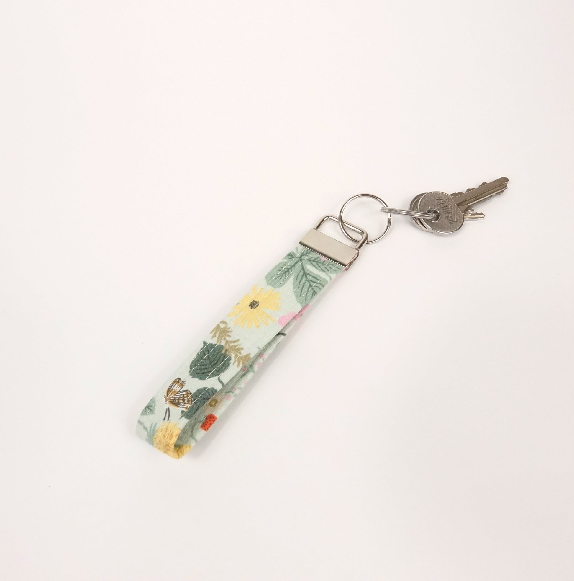Handmade Mint Strawberry Fields key chain. All made with high-quality Rifle Paper Co. designer fabric.